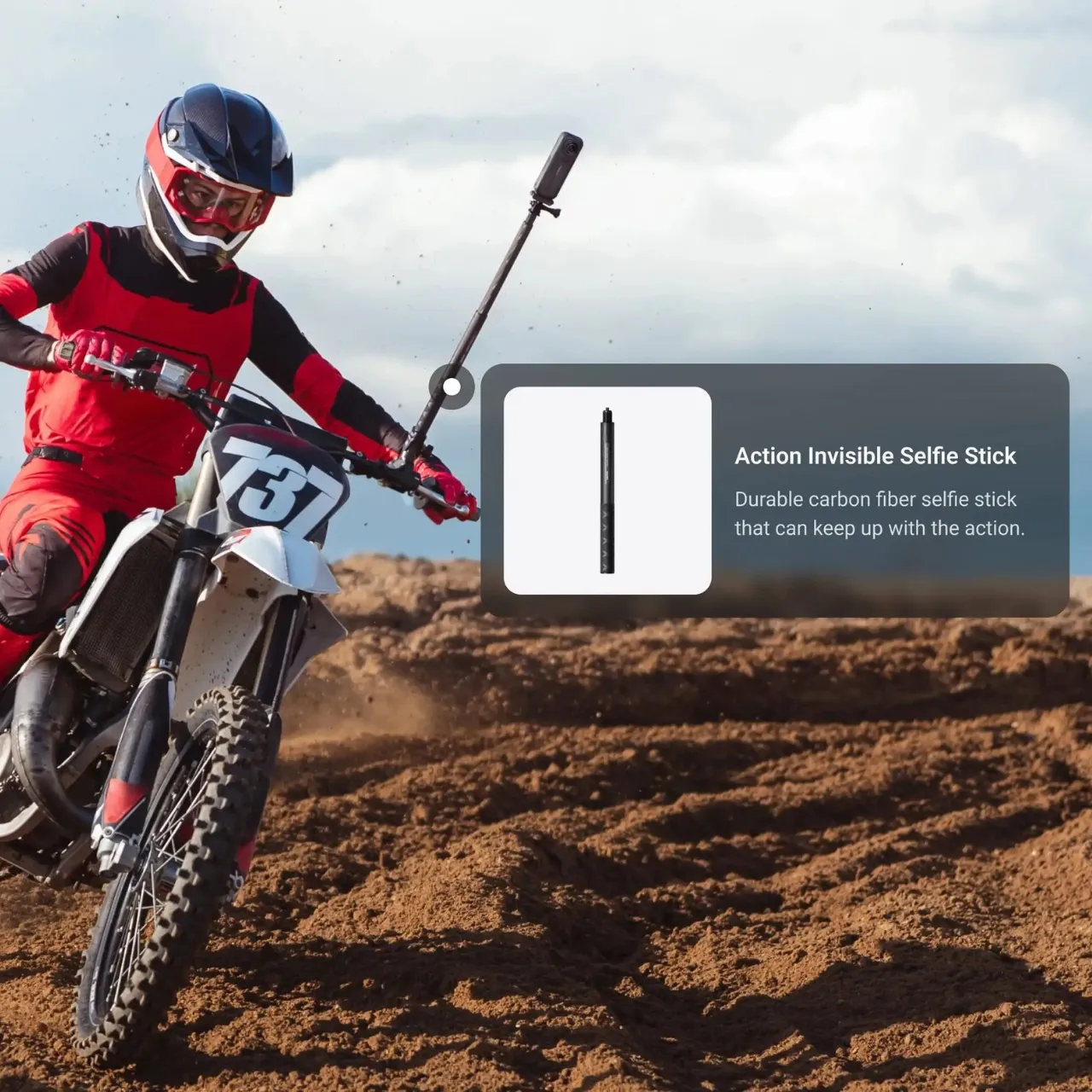 When the X5 is attached to a selfie stick, the stick disappears in your edit, enabling you to capture aerial angles and third-person perspectives that can be achieved without a second operator.